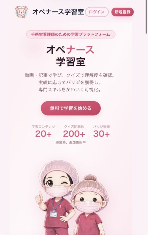 このページでは、手術室看護師のための学習プラットフォーム「オペナース学習室」の登録方法と、基本的な使い方をステップごとに解説します。