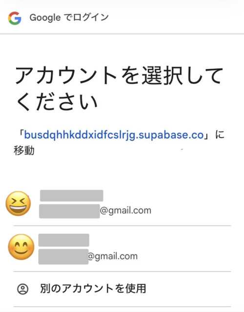 - アカウント選択画面が表示されるので、ご自分の使用したいアカウントを選択して下さい。